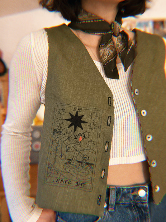 David Bowie ✨ Embroidered Linen and natural block printed cotton vest size S/M
