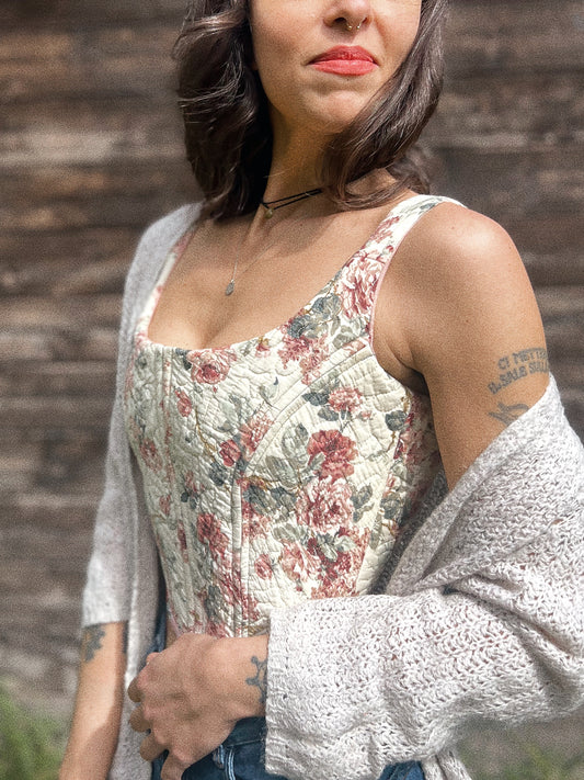 Corset with boning size XS/M adjustable ~ vintage fabric